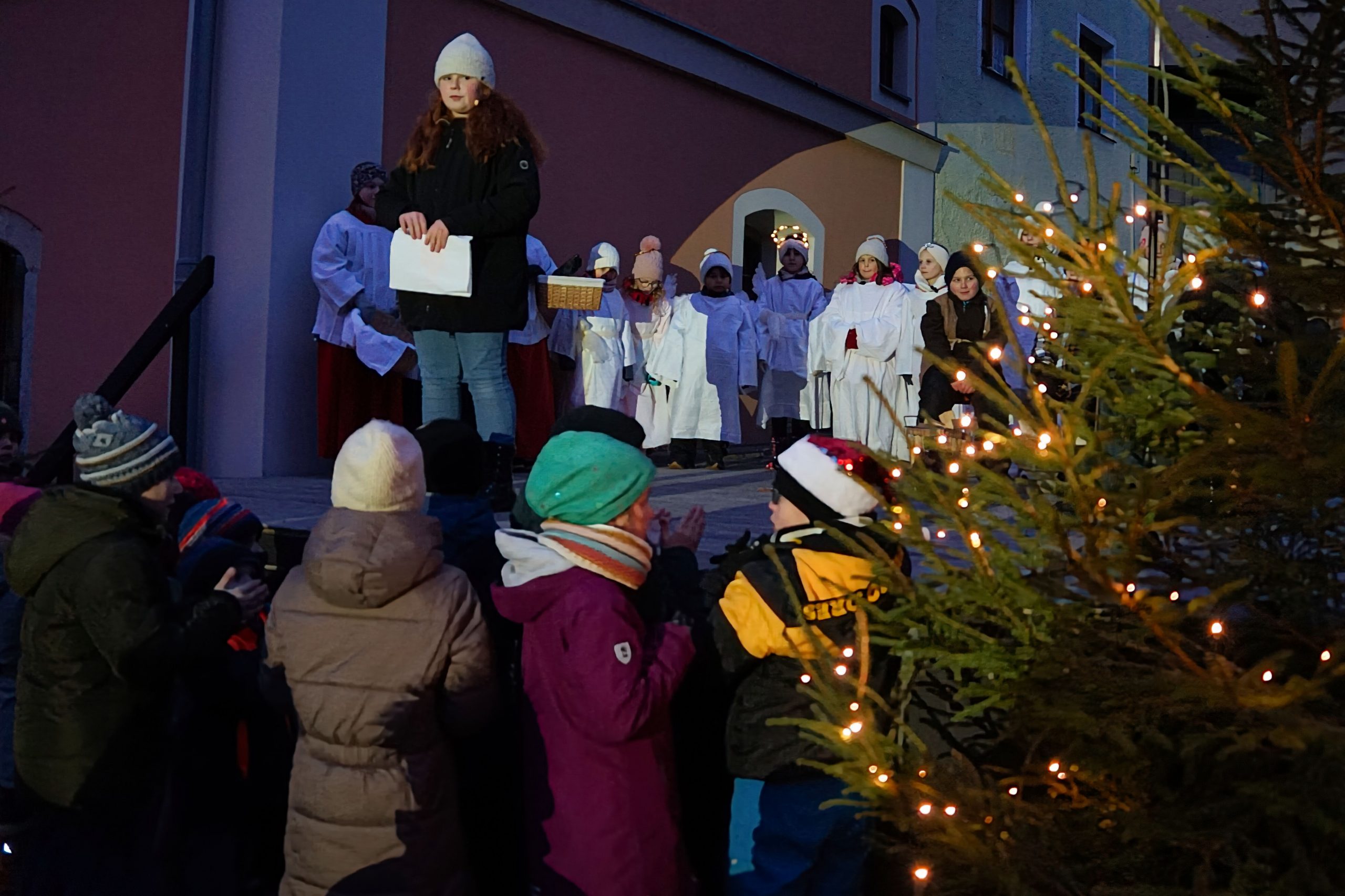 Am Nachmittag versammelten sich Kinder und Familien auf dem Marktplatz zur Kindermette, bei der ein Krippenspiel die Weihnachtsgeschichte lebendig machte. Am Abend feierte die Gemeinde die Christmette in der Pfarrkirche, musikalisch begleitet vom Kirchenchor.