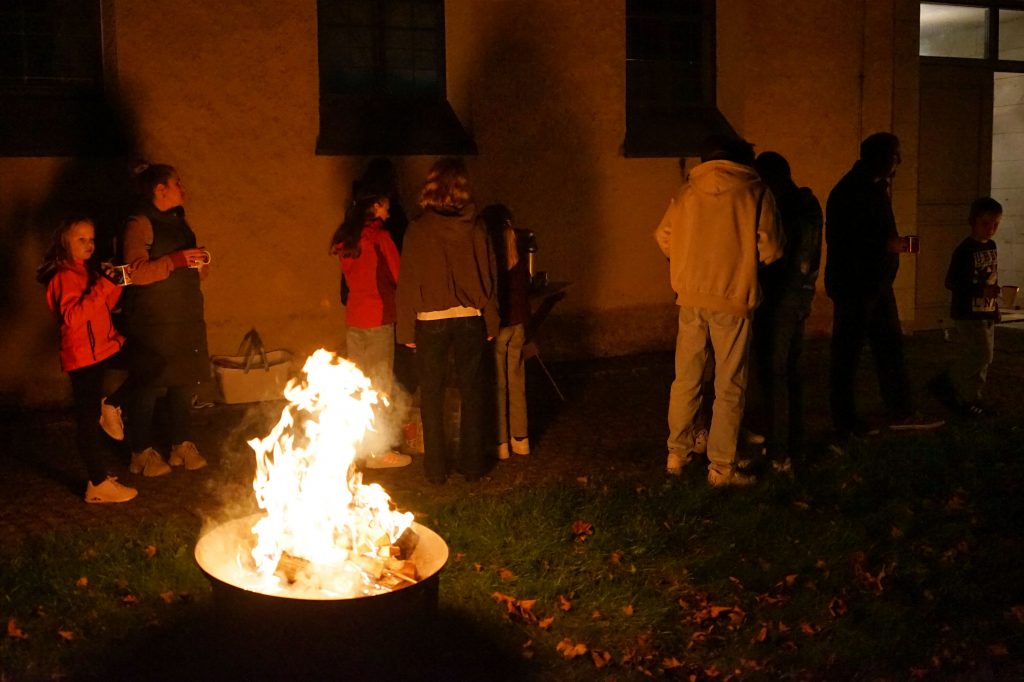Nach dem Jugendgottesdienst sorgten lodernde Flammen in den Feuerschalen für Wärme im Freien, während heißer Tee und süßer Kakao innere Wärme spendeten. Bei netten Gesprächen und guter Stimmung klang der Abend in gemütlicher Atmosphäre aus.