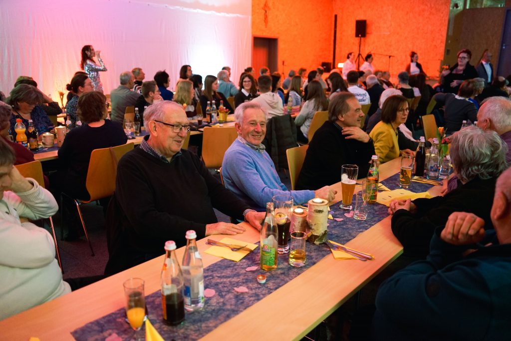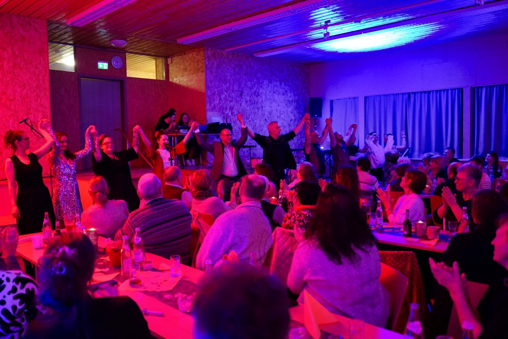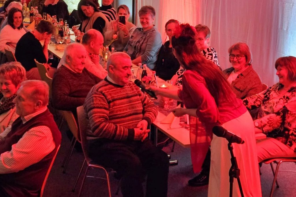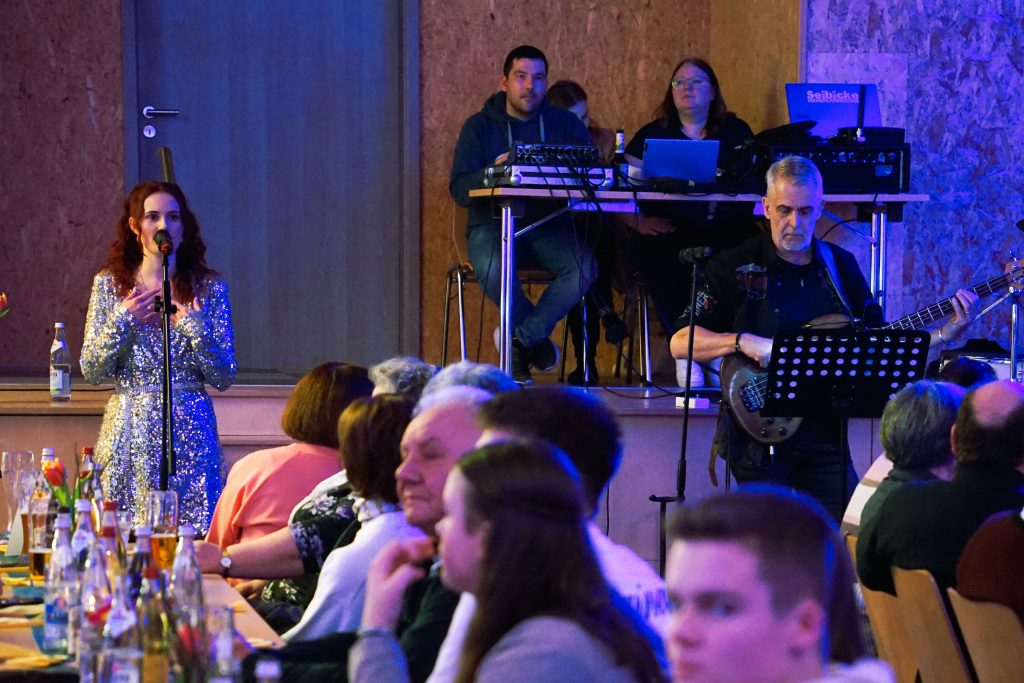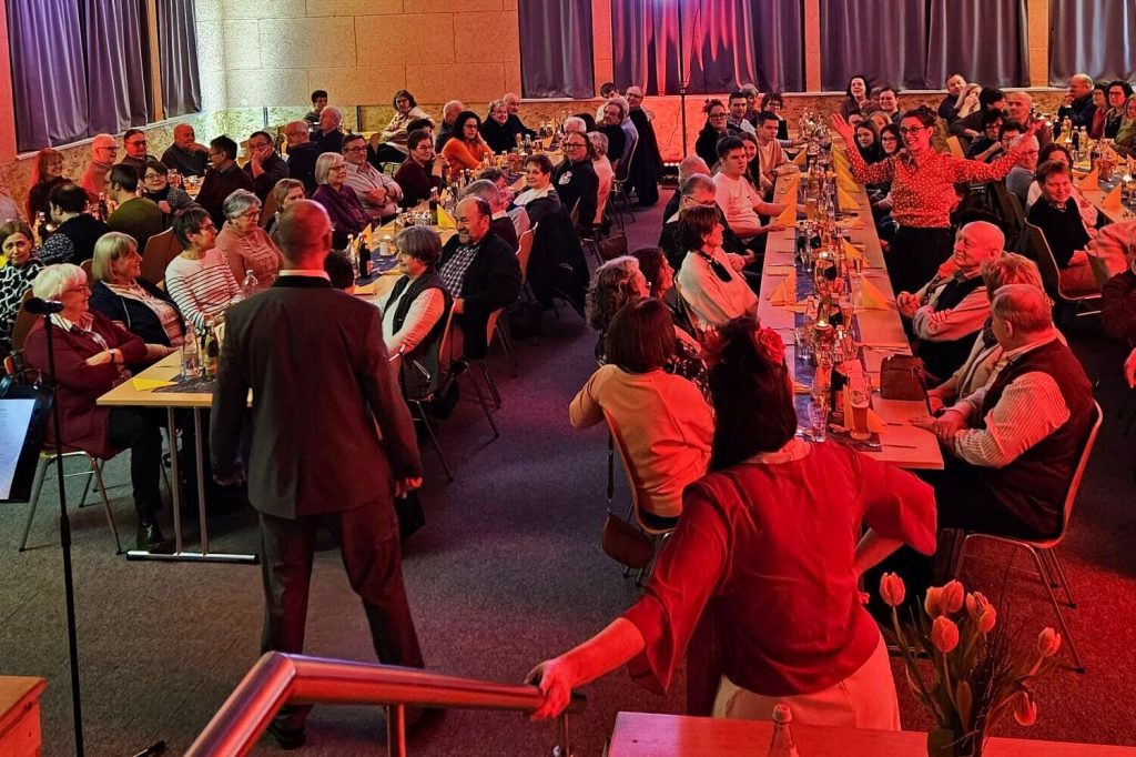 Beim Ehrenamtsabend der Pfarreiengemeinschaft Oberviechtach, Wildeppenried und Pullenried kamen zahlreiche ehrenamtlich Engagierte im AWO-Heim in Oberviechtach zusammen. Während des gemeinsamen Essens – mit Vorspeise, Schnitzel und Kartoffelsalat sowie einem Nachspeisenbuffet – begleitete das OVIGO-Programm den Abend mit humorvoller Unterhaltung. In einer heiteren Hochzeitsgeschichte, bei der die Braut zunächst fehlte, versuchte eine spontan gegründete Band mit Liebesliedern eine Versöhnung herbeizuführen. Tom Gitter übernahm dabei eine zentrale Rolle und brachte die Gäste mit viel Witz zum Lachen. So verband der Abend auf gelungene Weise Dank, Gemeinschaft und Theatergenuss.