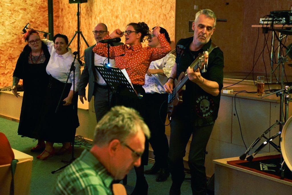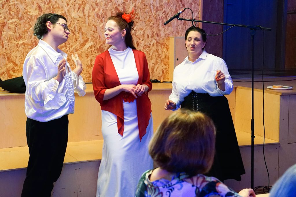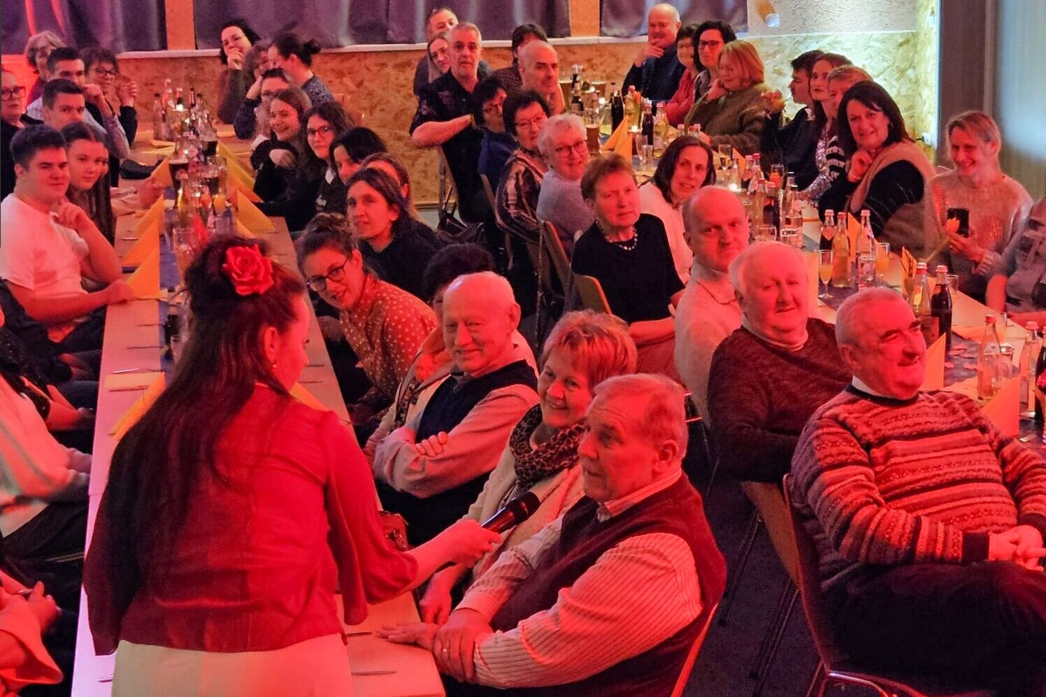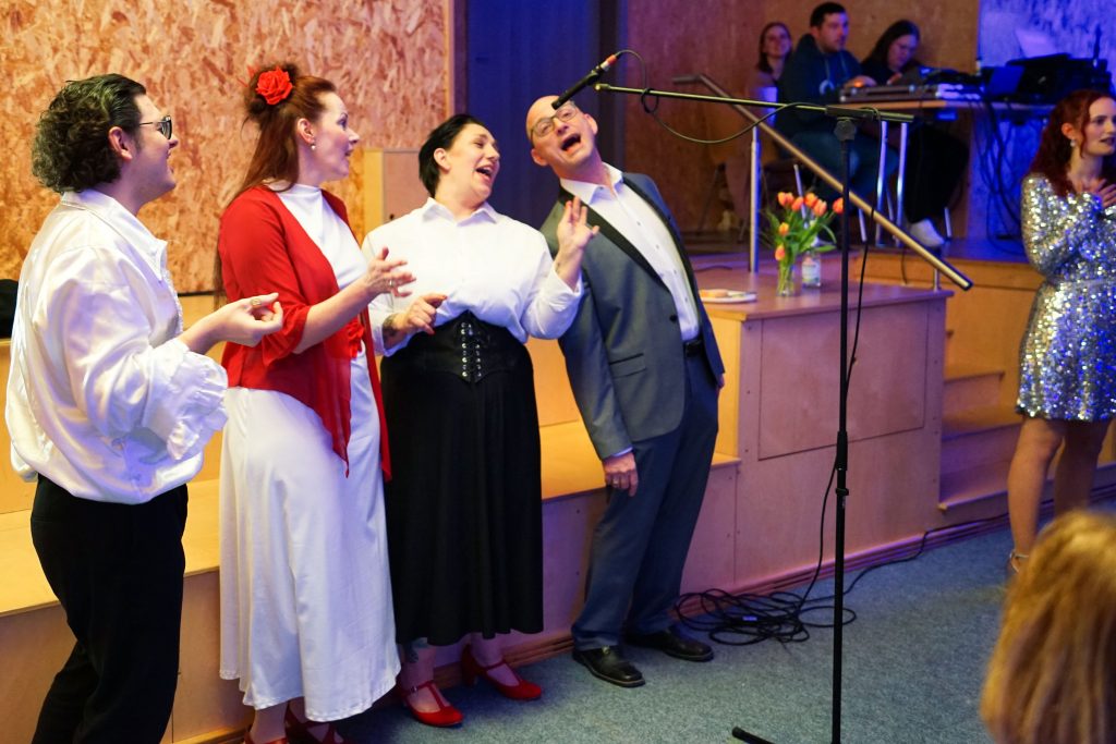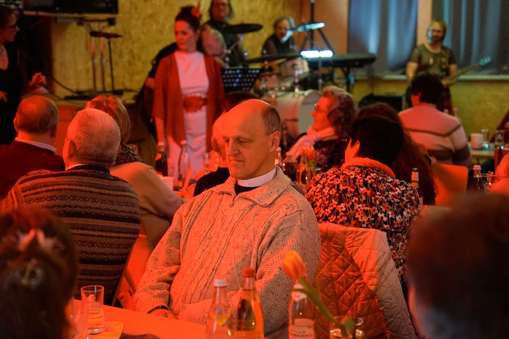 Beim Ehrenamtsabend der Pfarreiengemeinschaft Oberviechtach, Wildeppenried und Pullenried kamen zahlreiche ehrenamtlich Engagierte im AWO-Heim in Oberviechtach zusammen. Während des gemeinsamen Essens – mit Vorspeise, Schnitzel und Kartoffelsalat sowie einem Nachspeisenbuffet – begleitete das OVIGO-Programm den Abend mit humorvoller Unterhaltung. In einer heiteren Hochzeitsgeschichte, bei der die Braut zunächst fehlte, versuchte eine spontan gegründete Band mit Liebesliedern eine Versöhnung herbeizuführen. Tom Gitter übernahm dabei eine zentrale Rolle und brachte die Gäste mit viel Witz zum Lachen. So verband der Abend auf gelungene Weise Dank, Gemeinschaft und Theatergenuss.