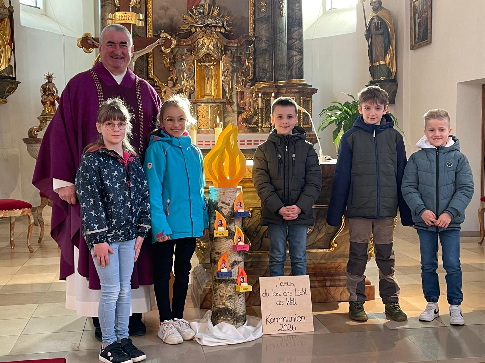 Im Sonntagsgottesdienst stellte Pfarrer Alfons Kaufmann die Kommunionkinder in Pullenried vor